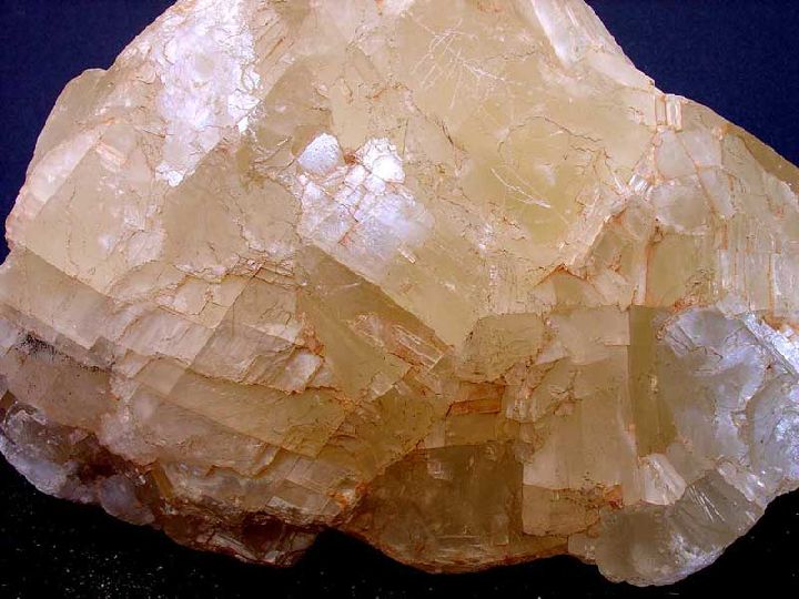 8. Exfoliación y fractura: La exfoliación es la propiedad de ciertos minerales de partirse en determinadas direcciones cuando son sometidos a esfuerzos, se debe a la existencia de ciertos planos de debilidad en su estructura. La exfoliación puede ser: en una dirección (laminar), dos (prismática, tabular) o más (romboédrica, cúbica, rombododecaédrica, octaédrica, etc.).